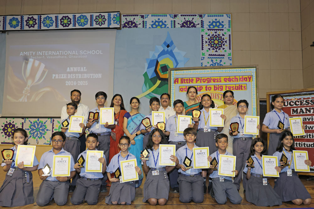 Over 1000 students from Class Nursery-I were felicitated for their academic and extracurricular achievements during the annual prize distribution ceremony, 2024-25. The event began with the ceremonial lamp lighting and shloka recitations, followed by vibrant cultural performances by students. Students were felicitated across diverse categories including Academic Toppers, All-Rounders, Rising Stars, Subject Toppers, and Amicable Personalities, along with awards for excellence in Sports, Arts, Music, Drama, and Creative Writing. School Principal Ms. Raina Krishnatrayin her address, congratulated all the winners for their achievements.