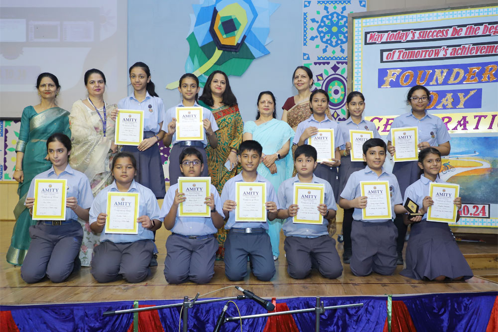 The school celebrated Founder’s Day to honour the birthday of Founder President, Dr Ashok K. Chauhan recognising his vision and dedication to education. The celebration began with a sacred ‘Hawan’ and lamp lighting. School Principal in her address, appreciated Founder President’s vision and guidance. The occasion also marked the felicitation of meritorious students for their outstanding academic and co-curricular achievements in the 2023-24 academic year. School toppers, along with students achieving 90% and above, and top five achievers from Classes VI to XII received Honour, Scholar Badges and certificates.