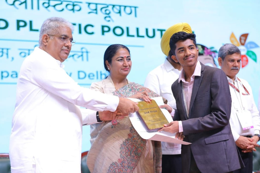 Dhruv Sharda of Class XII secured second position at National level in the Ideas4LIFE: initiative competition organized by the Ministry of Environment Forest & Climate Change, Govt. of India for his project “AI based floating trash can”. He was awarded a shield and certificate by Delhi Chief Minister Ms. Rekha Gupta at special function held at Bharat Mandapam, New Delhi. He earned this distinction among participants including IIT students, professors, and PhD teachers.