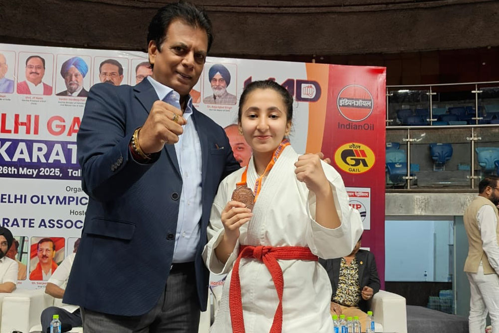 Prasiddhi Tiwari (XII C) won Bronze Medal at the Karate events of Delhi Games 2025 held under the aegis of Delhi Olympic Association successfully conducted by Karate Association of Delhi (KAD), the affiliated unit of DOA at Talkatora Indoor Stadium, New Delhi.
