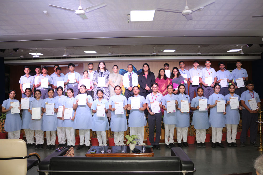 School students Manan Gupta (XII), Siya Makhija (XII), and Tanvi Jain (XII), received silver medals and certificates, while thirty others were awarded bronze medals and certificates for completing their International Award for Young People journey for the year 2024-2025. The ceremony marked the successful completion of this globally recognised programme for school and college students across four domains — Skill, Adventure, Social Service, and Sports.
