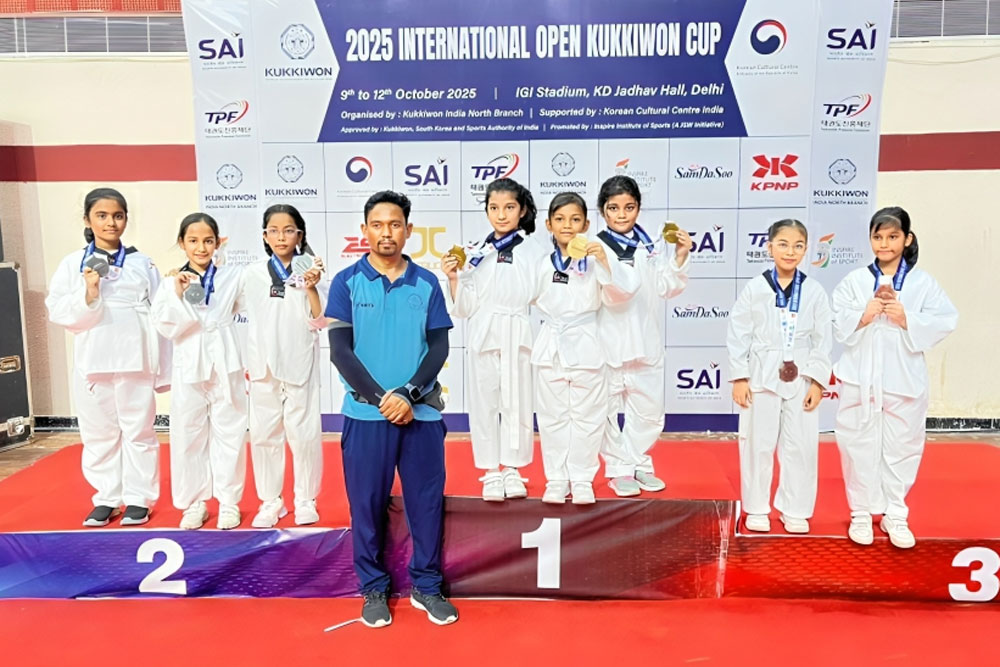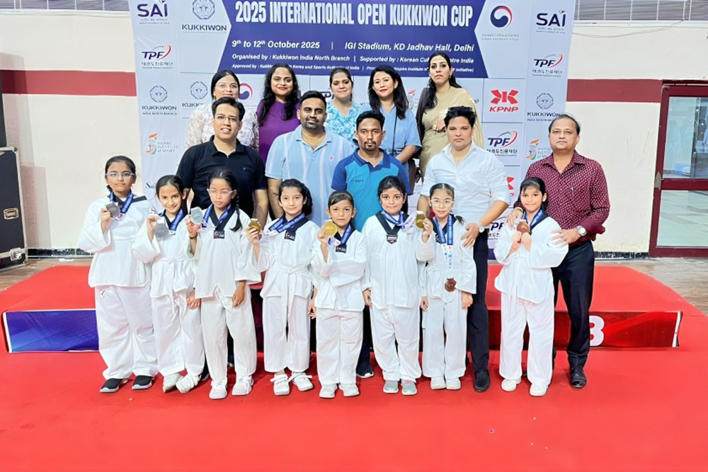 The young champions won medals at the International Open Kukkiwon Cup Taekwondo Championship held at Indira Gandhi Indoor Stadium, New Delhi. Hanshika Mittal (V), Pravika Singh (III), Myra Deep Grace (III) and Shivangi (III) bagged gold medals while Keerat Malik (III), Ahanya Gupta (III) and Sanvi Jain (IX) brought home the silver. The bronze winners were Anaya Khangar (III), Garv Seth (III), Advika Goel (V), Kinara Mohanty (III), Arjun Nagpal (V), Abhigya Singh (VI), Aanya Vedwal (VII), Trisha Sharma (VII), Shlok Pathak (IV), Aryan Singhal (X), Ashmeet Kumar (X), and Neelaksh Jay Bhatt (XII).
