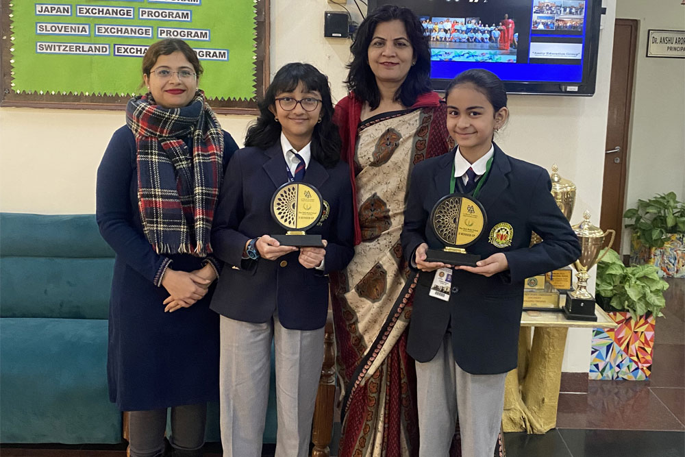 Vasvi Mohapatra (VI) and Gunee Dhawan (VI) secured third position in Féerie de Noël – a card-making competition – at Fête de la Langue, an interschool French language and culture event organised by Blue Bells School, Sec-4, Gurugram. The event witnessed participation from 25 schools.